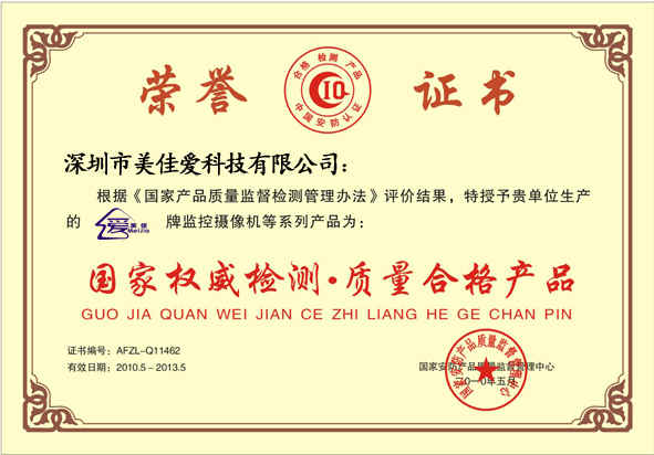 國家權(quán)威檢測 質(zhì)量合格產(chǎn)品證書副本