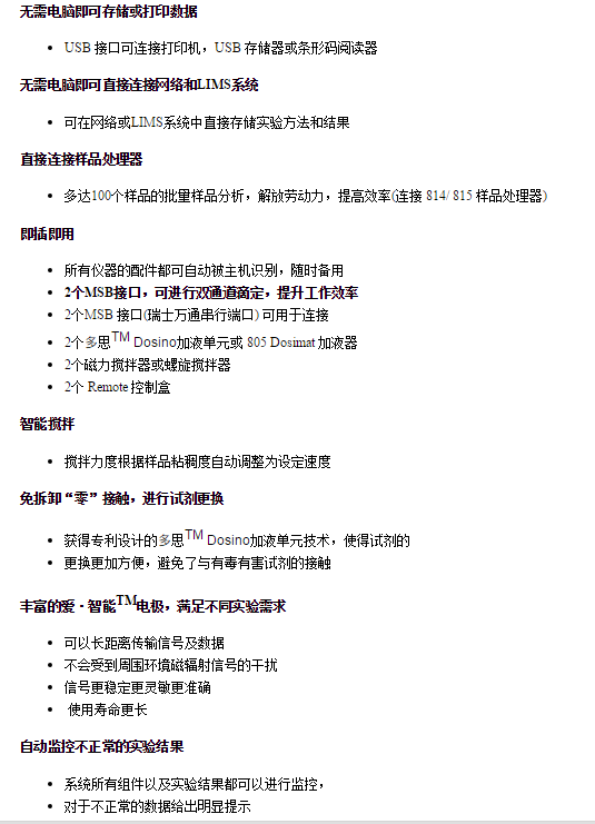 916 Ti-Touch 精靈一代 是全新的一體式電位滴定儀。體積小巧,但具有豐富的滴定模式: DET 模式(動態(tài)滴定), MET模式 (等量滴定), SET 模式 (設(shè)定終點(diǎn)滴定,可以設(shè)置一個或二個終點(diǎn)) 和 MAT模式 (手動滴定)。為了您的使用方便,根據(jù)您的應(yīng)用領(lǐng)域,瑞士萬通誠意為您提供以下三種標(biāo)準(zhǔn)配置包:916 Ti-Touch鹽分析包, 916 Ti-Touch油品分析包 和 916 Ti-Touch食品分析包,標(biāo)準(zhǔn)配置包包含了進(jìn)行相關(guān)項(xiàng)目分析需要的所有配件。